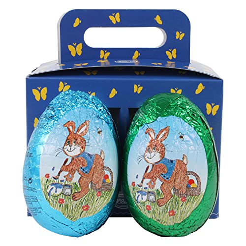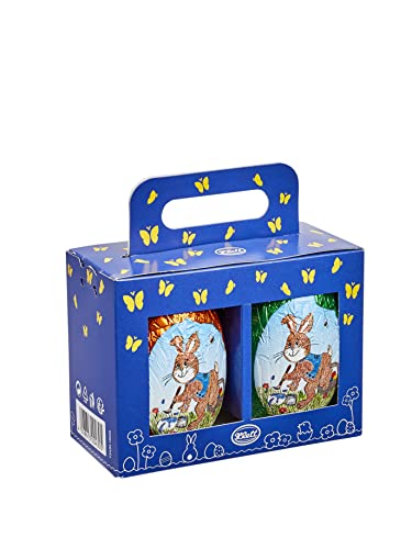 Klett Schokolade Eierdoosjes – 2 paaseieren van melkchocolade – paashaas als motief – decoratieve geschenkverpakking voor Pasen, 110 g