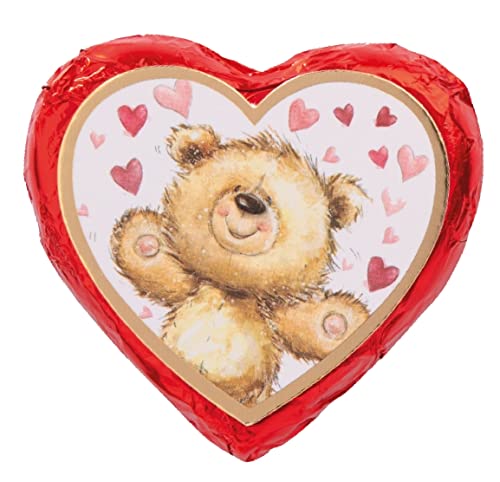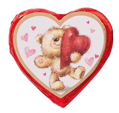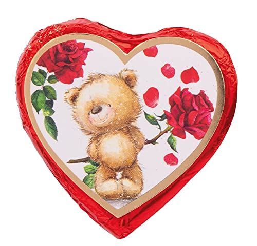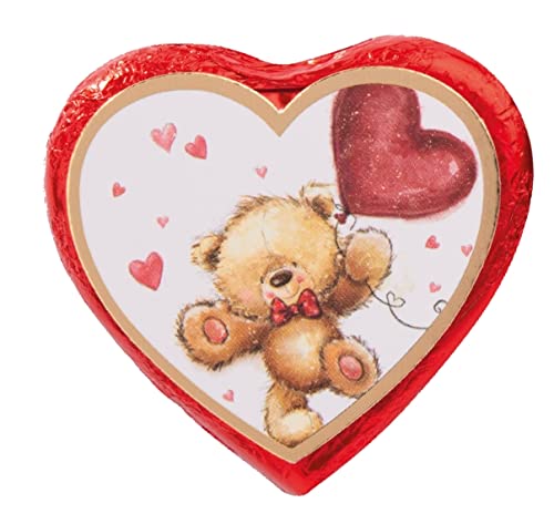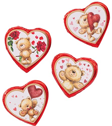 Günthart Chocolade harten – grote bonbonbonbonharten met teddy- en rozenmotief van melkchocolade – cadeau voor Valentijnsdag, verjaardag, Moederdag – zacht smeltende chocoladehartjes, 4x24g – Fairrad