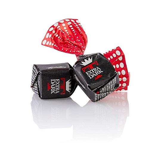 Extra donkere chocoladepralines. Ingrediënten: 41% IGP hazelnoten uit het piemont, 36% cacaomassa, suiker, cacaopoeder. Koel (bij +4 °C tot +18 °C) en droog bewaren. Vervaardigd in Italië.