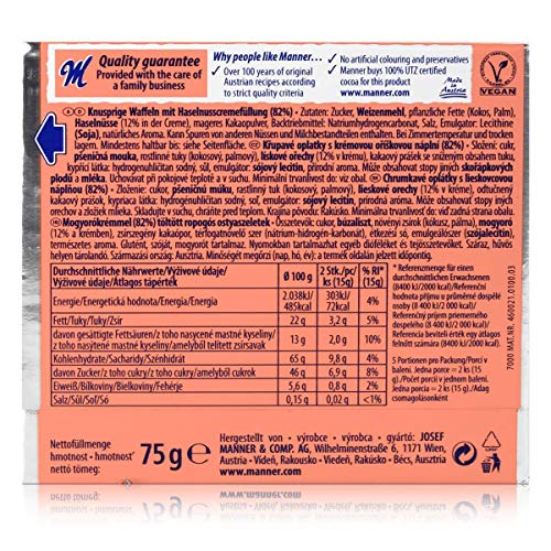 Manner Napolianen zijn knapperige wafels in meerdere lagen, gevuld met een hazelnootcrèmevulling